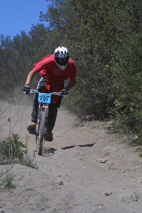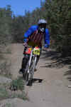 The second race of the California State series was held near Alpine, on the Kernan Cycle Trail. It was a fast trail that favored light bikes. Eigil's Four Banger held out just long enough to bag a first place finish. With a broken swing-arm pivot point, an ovaled-out shock mount eyes on the carbon fiber swing-arm, and Shwinn's bankruptcy still in the air, the bike is now a donor for his new hardtail!